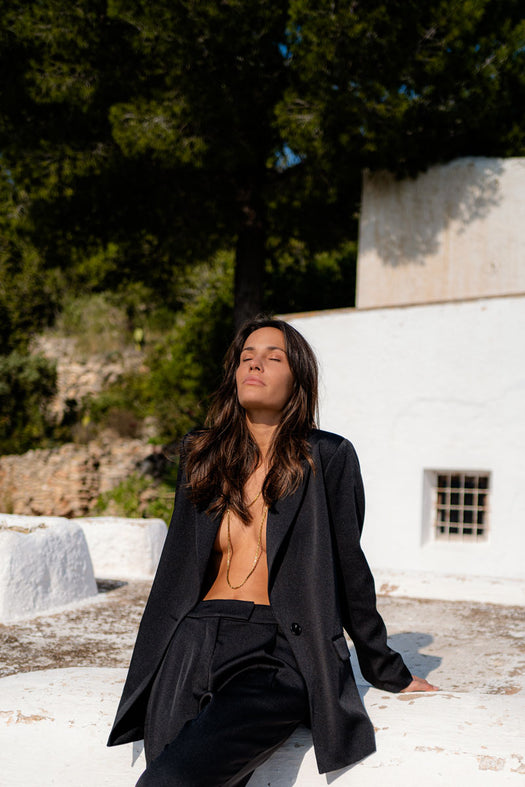 Le pantalon noir FEHU de Maison Paolina est un choix de prédilection pour les femmes cherchant un pantalon à la fois élégant et confortable. La coupe droite fluide offre un confort et une douceur exceptionnels. Son tissu satiné de qualité supérieure ajoute un côté chic et élégant qui le démarque.